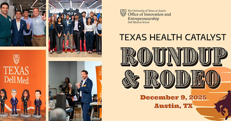 The Office of Innovation & Entrepreneurship at Dell Med invites you to the Fall 2025 Texas Health Catalyst (TxHC) Roundup & Rodeo—an exclusive showcase of cutting-edge healthcare innovations from across The University of Texas at Austin. Discover transformative solutions that are redefining how we get and stay healthy. Register now through the Eventbrite link below to secure your spot!